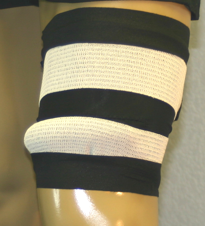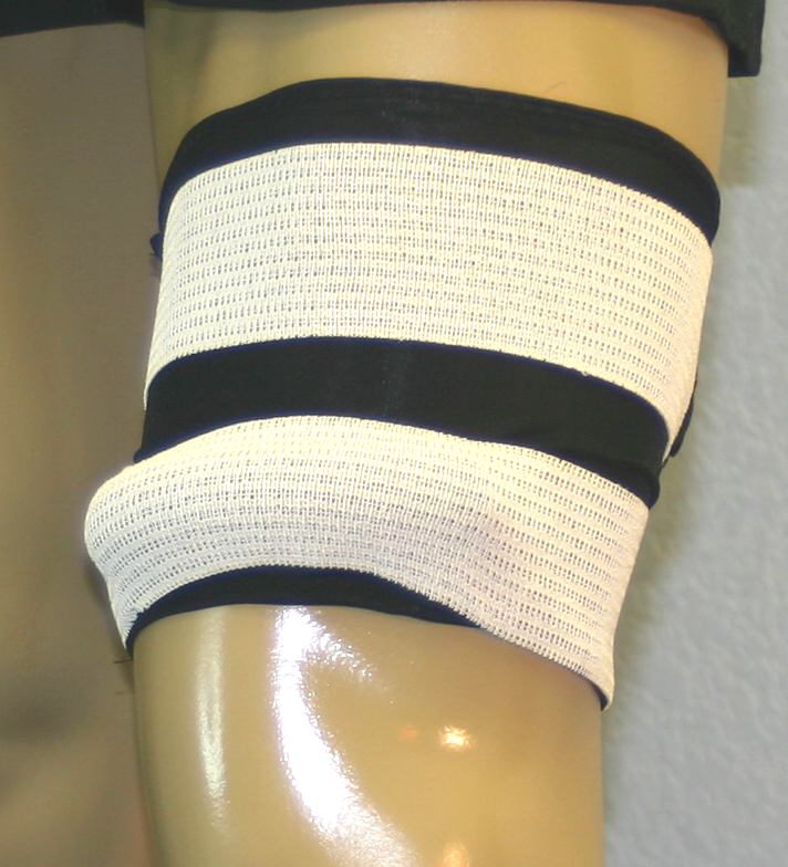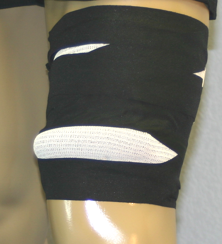 Apply athletic tape above, around the back and then below each Sausage™ in a horizontal "V"-like pattern.
